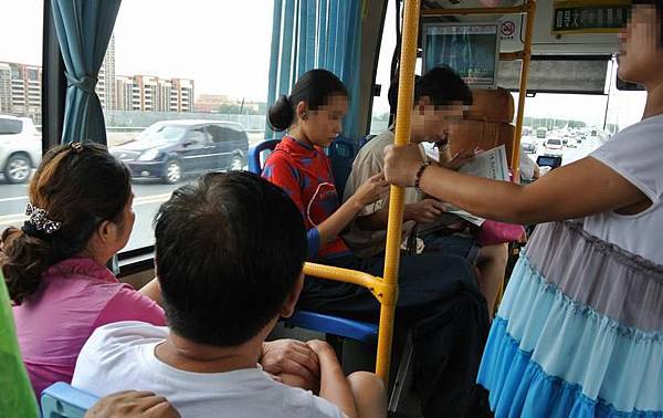 我仔细一看,發現她右脚有一點不方便,才了解老公為何不請她讓出位子。